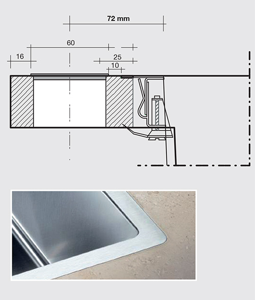 Nelle figure vengono evidenziati i due principali esempi di fissaggio di lavelli filotop e